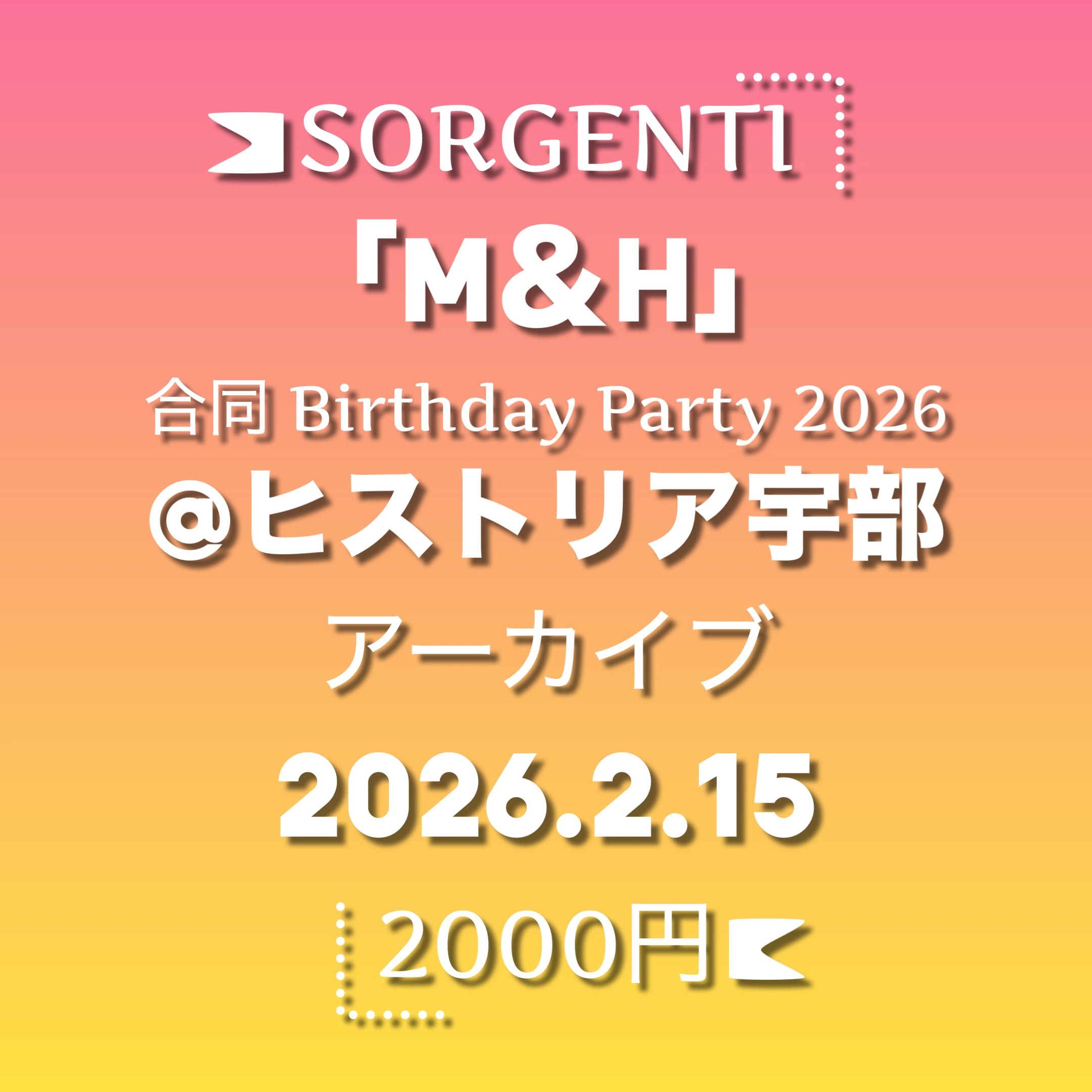 【アーカイブ事前購入】SORGENTI「M&H」合同 Birthday Party 2026@ヒストリア宇部