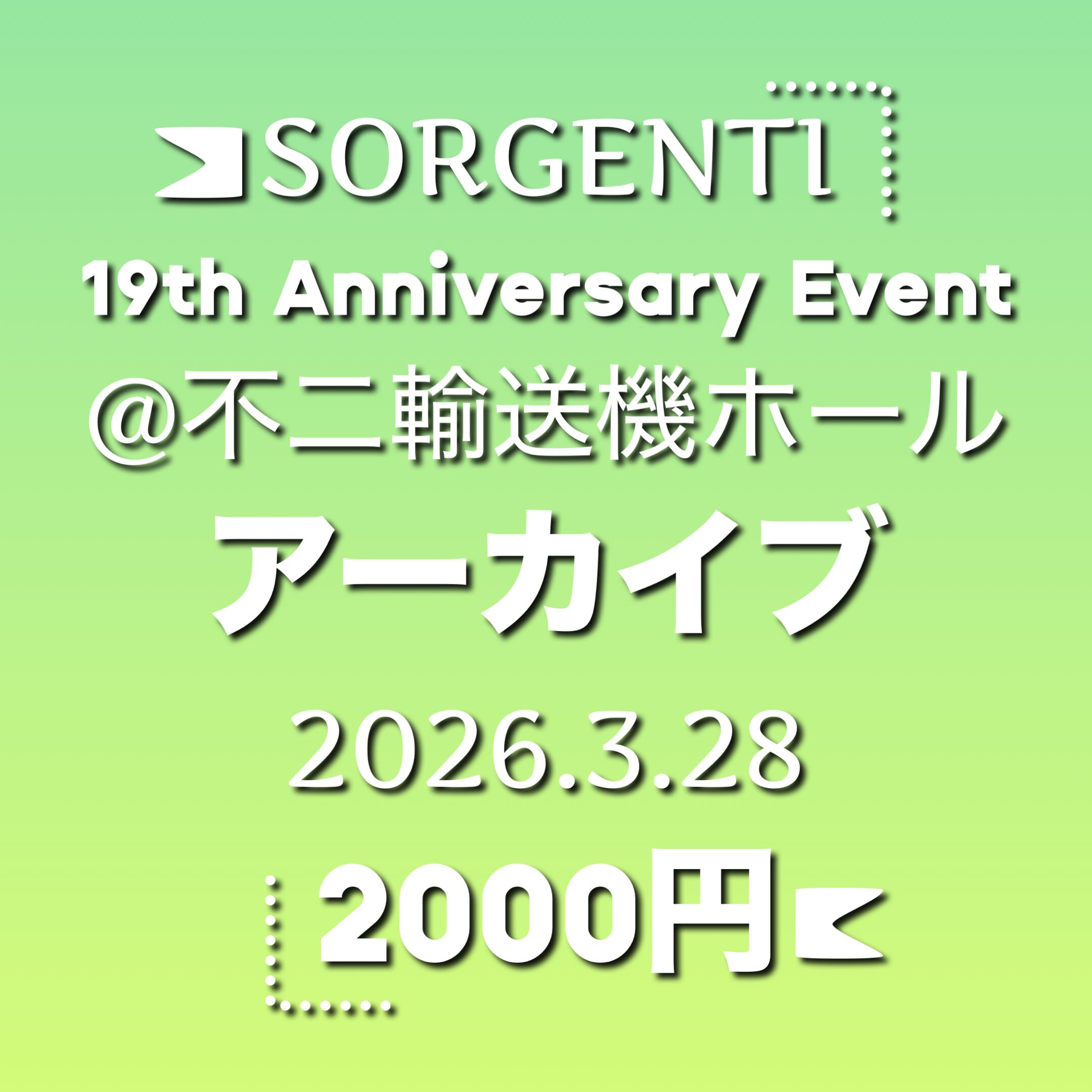 SORGENTI 19th Anniversary Event@不二輸送機ホール アーカイブ 2026.3.28